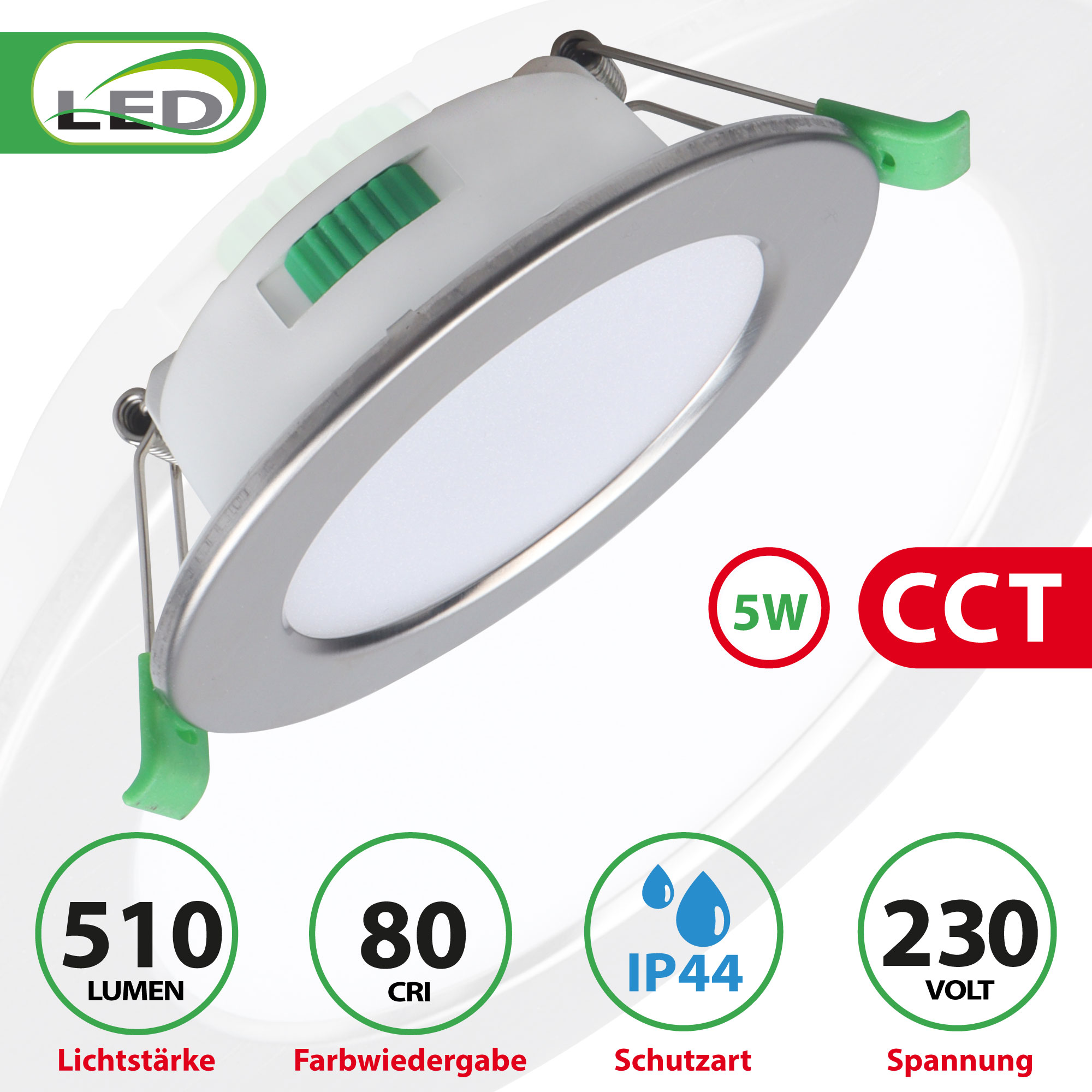 6 x LED Einbaustrahler URANUS 5W – Eisen gebürstet, CCT Deckenstrahler für Badezimmer