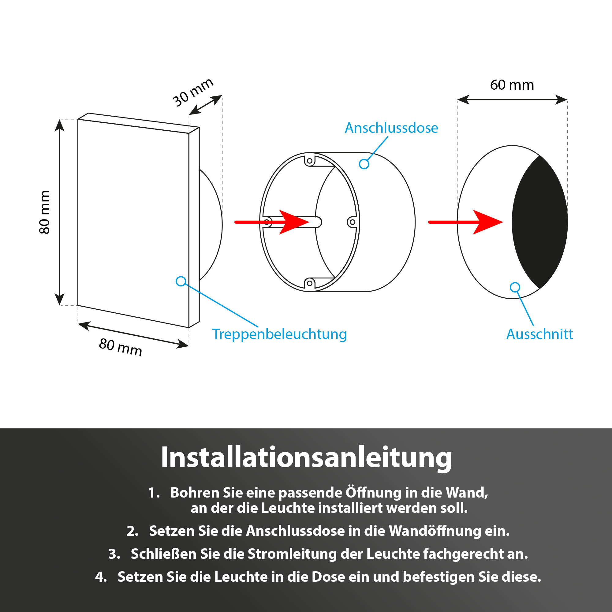✔️ Spürbar einfache Montage in Ø 68-mm Schalter- und Hohlwanddosen – intuitiv, schnell und sauber installiert (Kinästhetik).